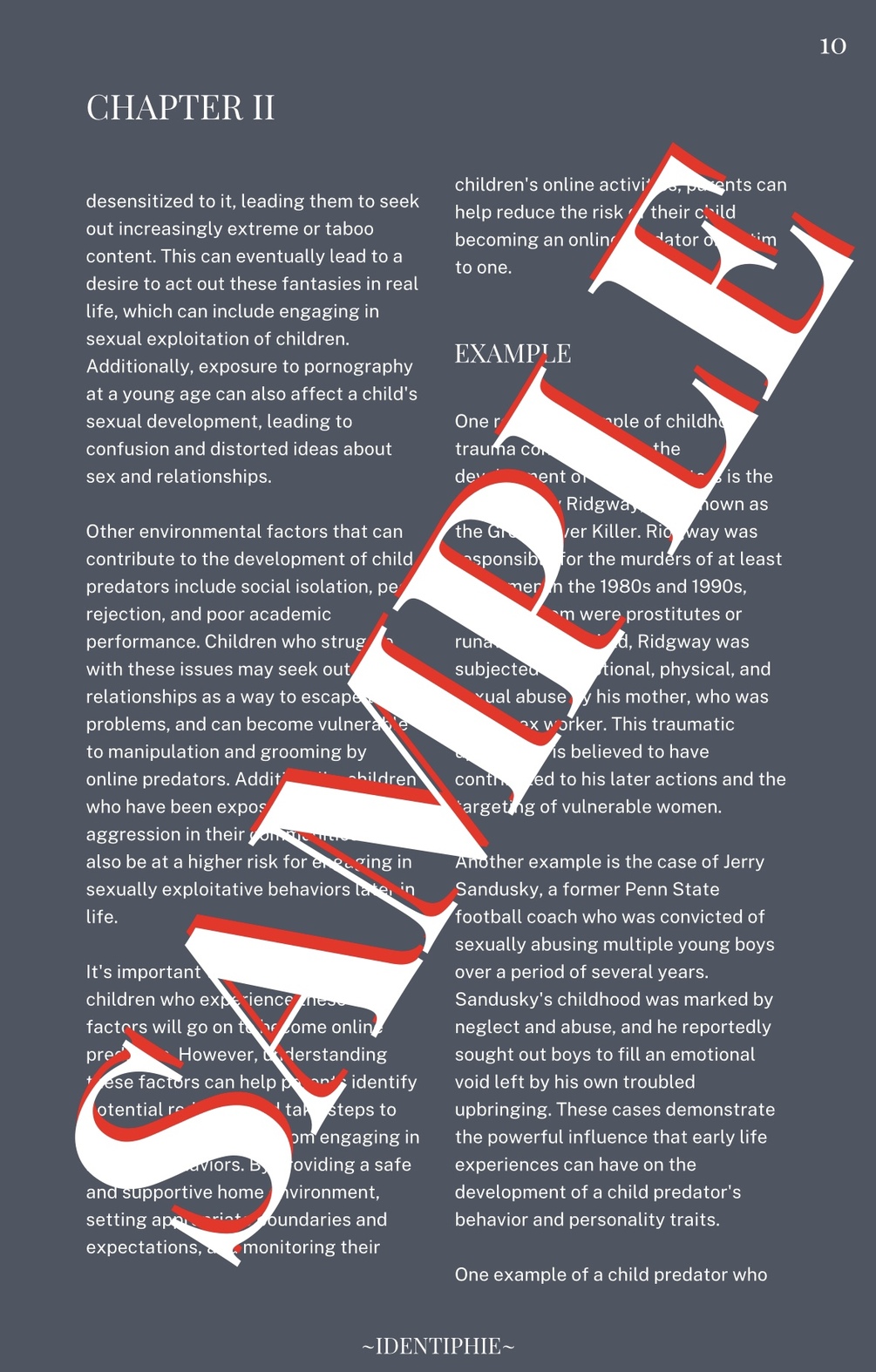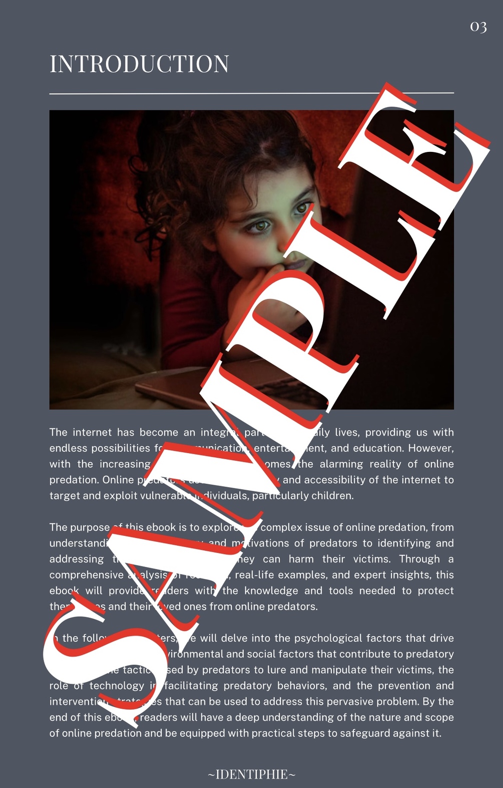 1 in 5 children are harrassed by an online predator, is your child safe? Get ahead of them with this detailed guide to unveiling the twisted mind of online predators. Online predators may seem secretive and complicated to understand, but don't worry because we got you covered. This ebook outlines the motives, creation and strategies of an online child predator so that YOU can IDENTIPHIE them and keep you and your child safe!